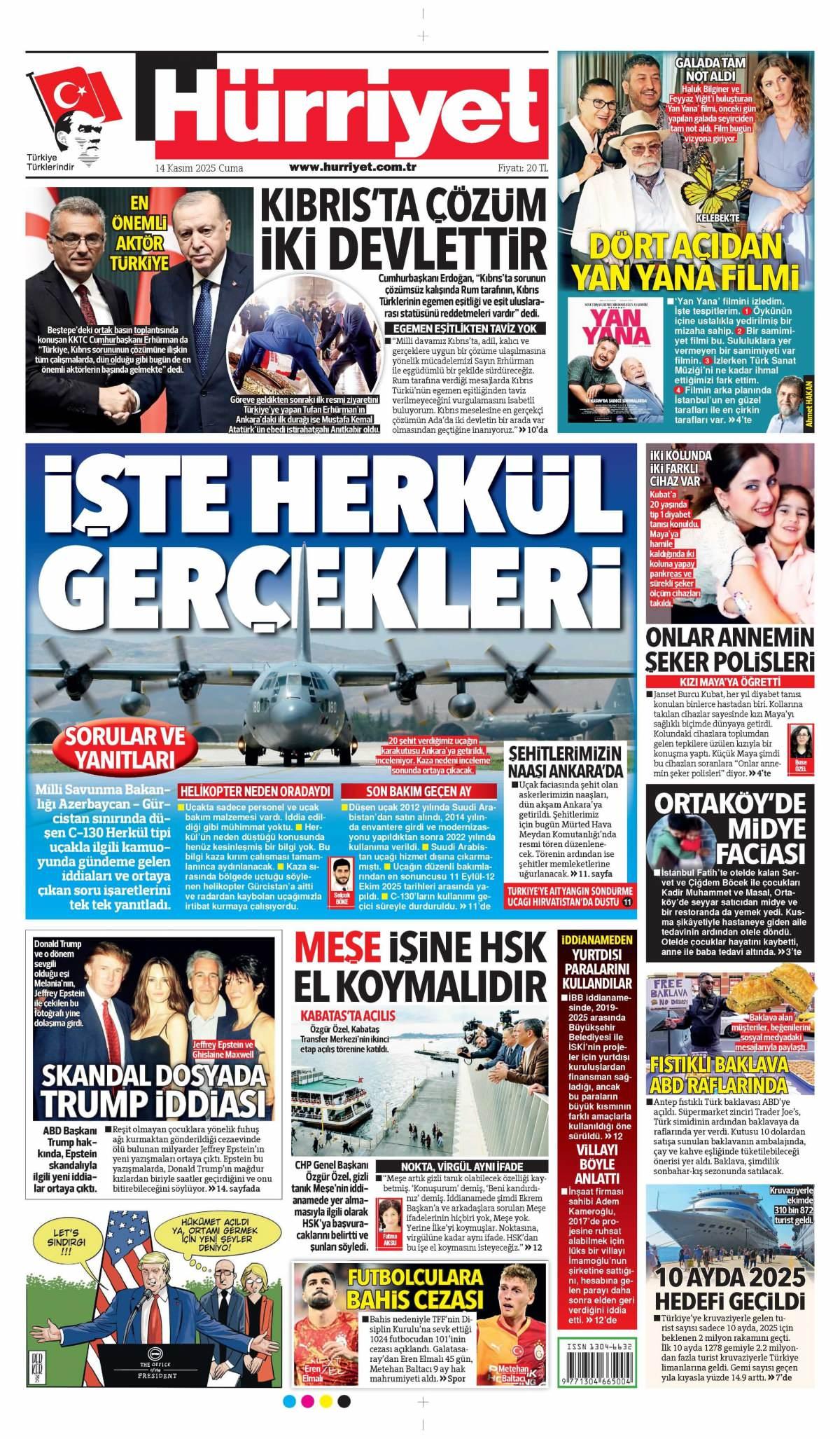 Hürriyet Gazetesi 14 Kasım 2025 Günü Manşeti
