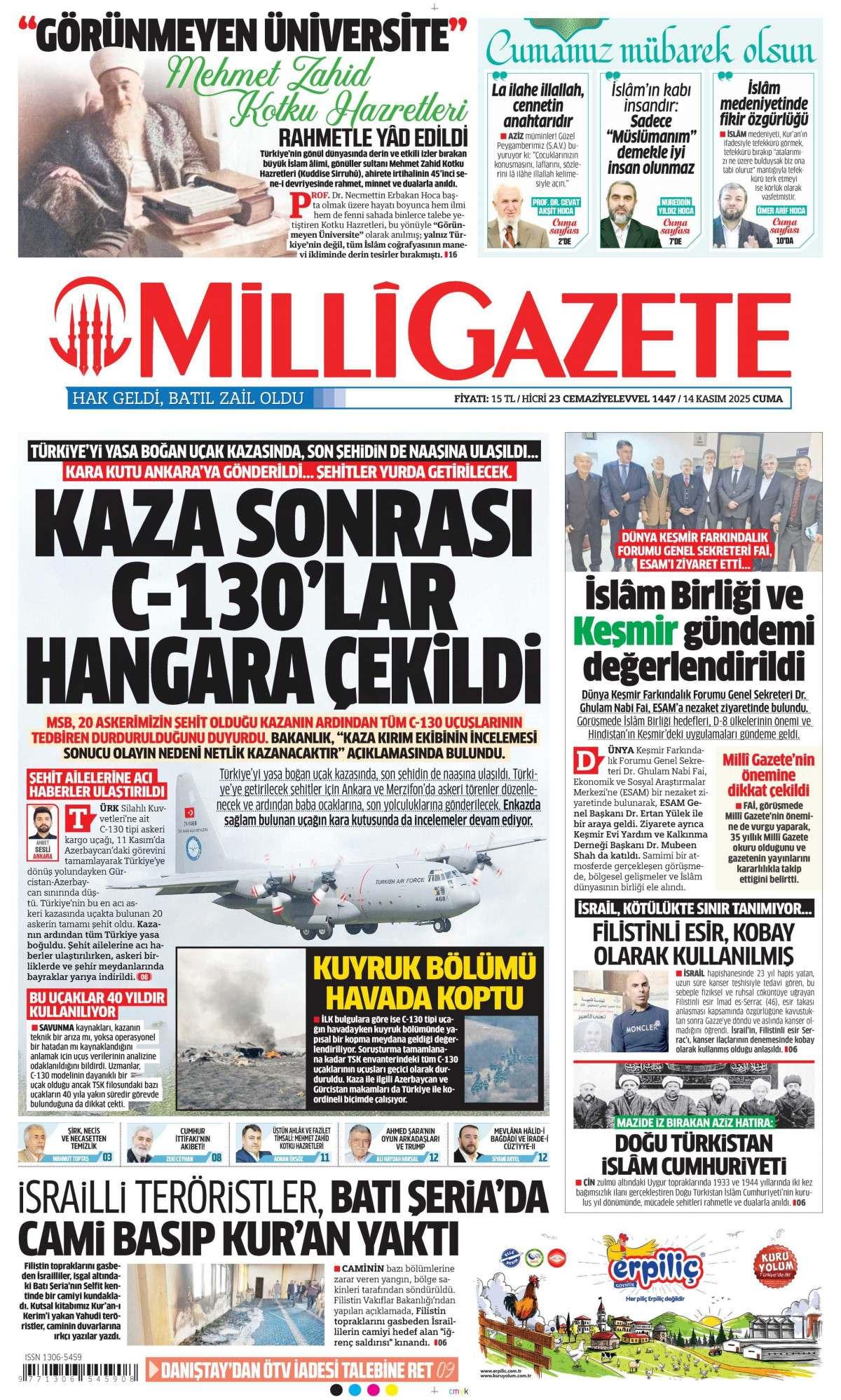 Milli Gazetesi 14 Kasım 2025 Günü Manşeti