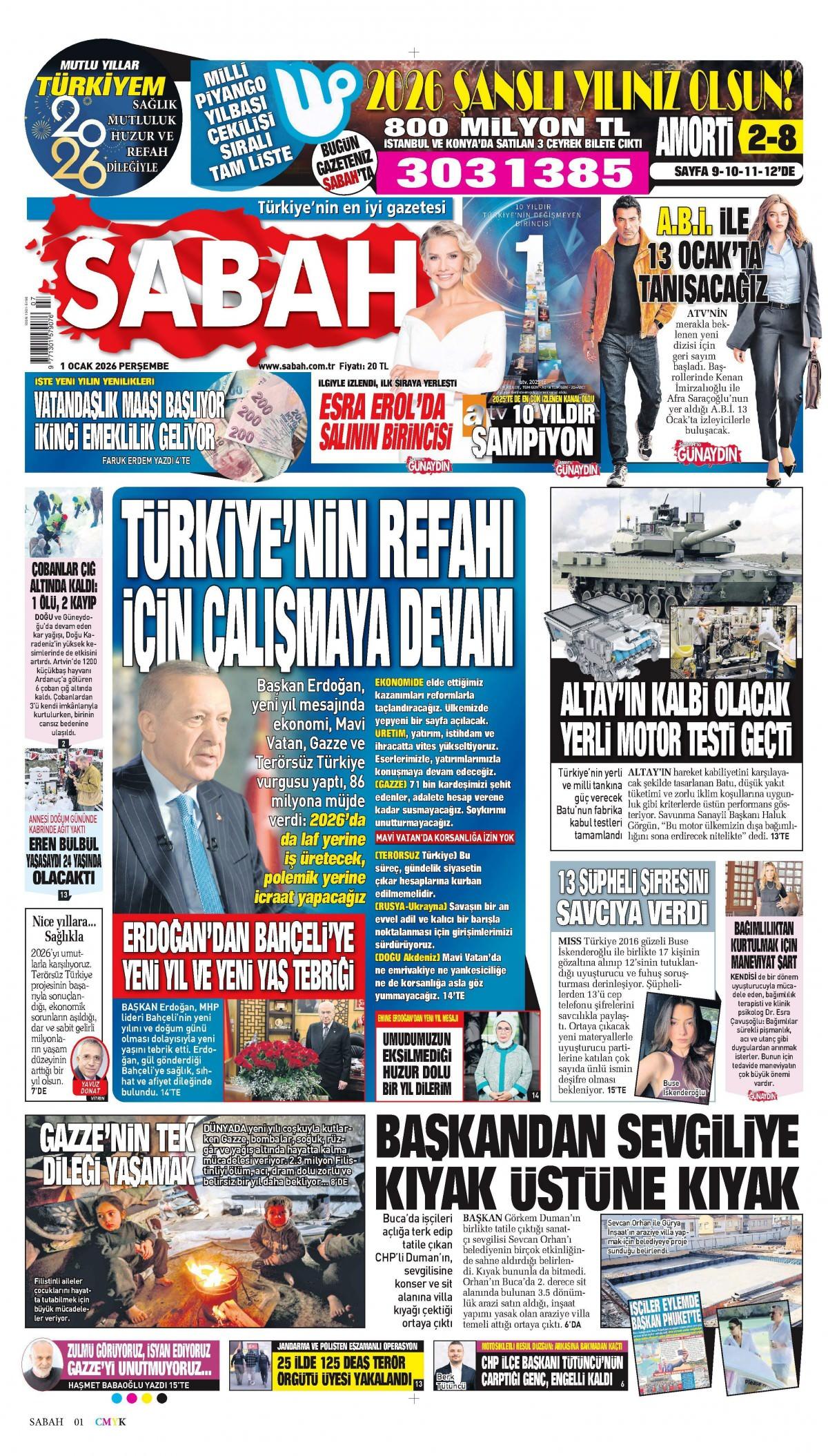 Sabah Gazetesi 1 Ocak 2026 Günü Manşeti