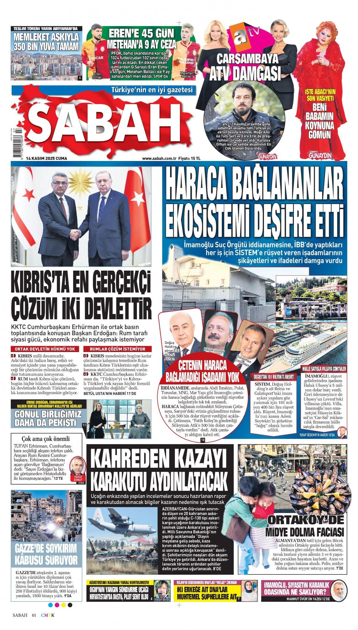 Sabah Gazetesi 14 Kasım 2025 Günü Manşeti
