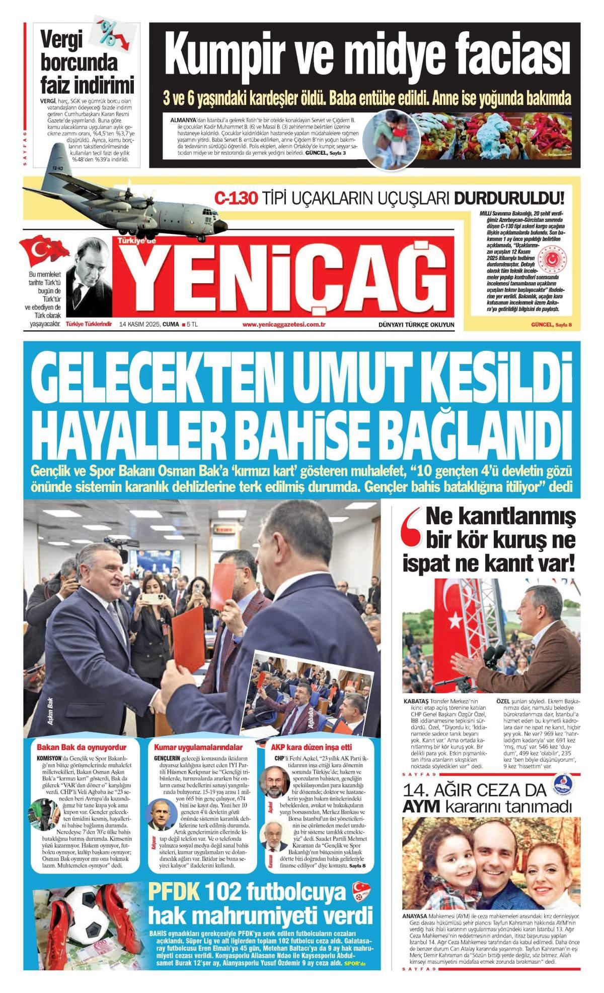 Yeni Çağ Gazetesi 14 Kasım 2025 Günü Manşeti